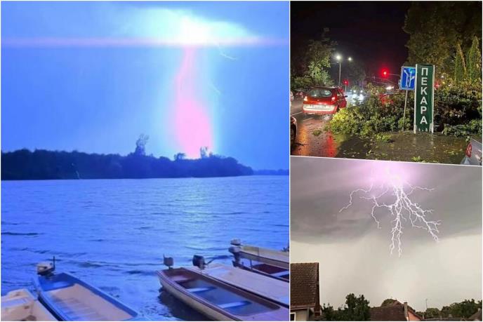 U Crvenki, oluja je bukvalno čupala drveće, pa su tako stradala i pojedina putnička vozila. U Novom Sadu munje su parale nebo