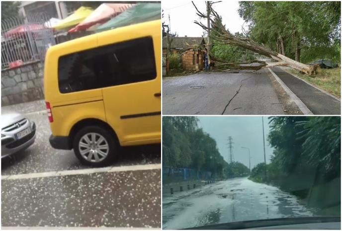 U Kisaču je padao grad veličine oraha, dok su olujni vetar i kiša na autoputu Novi Sad-Subotica omeli vozače zbog smanjene vidljivosti i mokrog kolovoza.