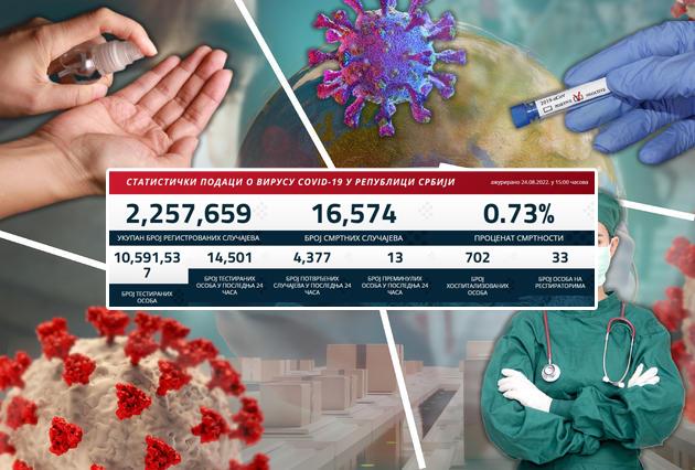 Korona virus je u poslednja 24 sata potvrđen kod 4.377 osoba, a istovremeno je od posledica ove bolesti preminulo 13 ljudi.