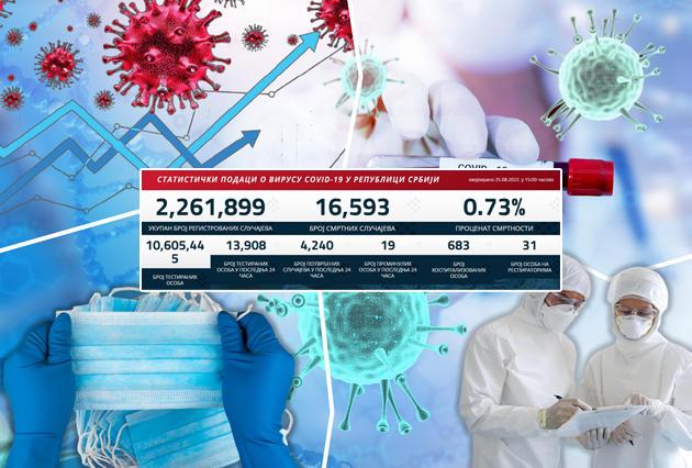 U Srbiji je u poslednja 24 sata virusom zaraženo 4.240 osoba, pokazuje najnoviji korona presek.