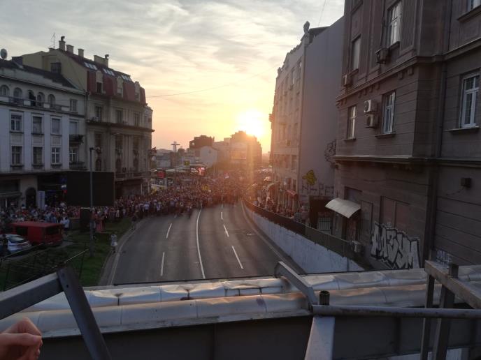 Mirna kolona krenula je sa protestnom šetnjom od Patrijaršije. Oni su od Saborne crkve nastavili da se kreću preko Zelenog venca, šetali su uz hotel "Moskva" sve do Hrama Svetog Save.