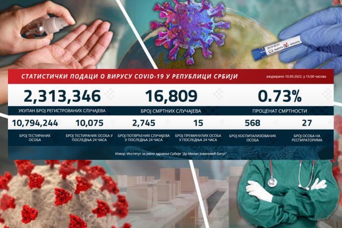 U prethodna 24 sata korona virus potvrđen je kod 2.745 osoba, a istovremeno je od posledica kovida preminulo 15 osoba.