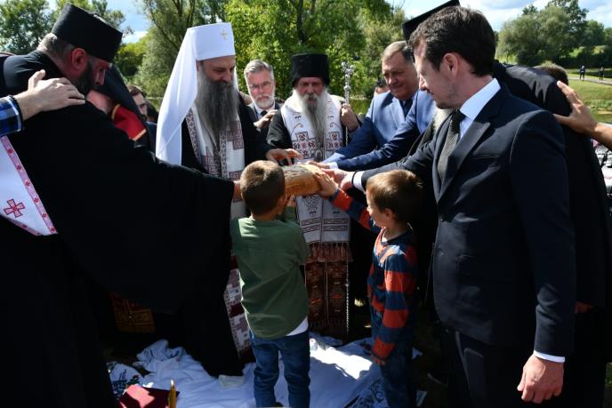 Oni su povodom praznika Svetih Novomučenika Jasenovačkih najpre u jasenovačkom Manastiru prisustvovali Svetoj arhijerejskoj Liturgiji koju je služio patrijarh srpski Porfirije, uz sasluženje Episkopa pakračko-slavonskog Jovana i brojnih episkopa Srpske i Makedonske Pravoslavne Crkve. Liturgiji su prisustvovali i srpski član Predsedništva BiH Milorad Dodik, ministri u Vladi Crne Gore Aleksandar Damjanović i Mirko Kovač, kao i ambasadori Republike Srbije i Ruske Federacije u Republici Hrvatskoj.