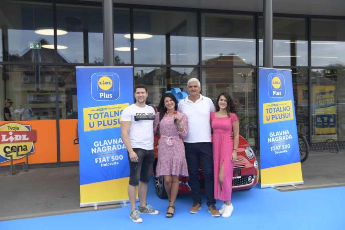 Glavna nagrada, automobil Fiat 500 Dolcevita, danas je uručena Mileni Milović, stanovnici Pančeva, ispred Lidl prodavnice u njenom gradu u kojoj je srećna dobitnica skenirala svoju Lidl Plus aplikaciju. Osim toga, dodeljene su brojne druge nagrade, čak 10 Samsung televizora i Iphone telefona i 500 nagradnih vaučera u vrednosti od 1.500 dinara za kupovinu u Lidlu.