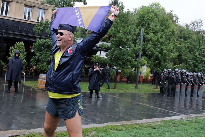 Kapa koju je nosio na glavi imala je kokardu Dinarske divizije. Sve vreme dizao je nad glavom zastavu BiH, a došao je u trenerci sa grbom Crvene zvezde.