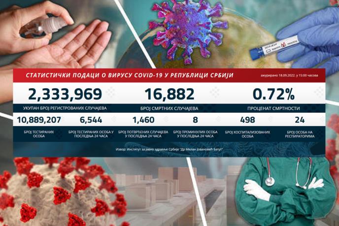 U prethodna 24 sata korona virus je potvrđen kod 1.460 od 6.544 testirana građana.