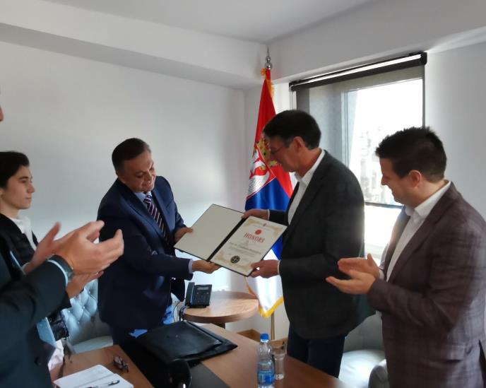 Institut za kardiovaskularne bolesti ,,Dedinje“ ugostio je danas izuzetnog gosta, prof. dr Fridhelma Bajerzdorfa (Friedhelm Beyersdorf), predsednika Evropskog udruženja kardiotorakalne hirurgije i doskorašnjeg upravnika Klinike za kardiohirurgiju Univerzitetskog centra u Frajburgu, gde je proveo predhodnih 28 godina. Tom prilikom, uglednom svetskom hirurgu, kao simboličan čin zahvalnosti za nesebičan lični doprinos razvoju ,,Dedinja“ i saradnje sa Evropskim udruženjem, uručena je Velika povelja Instituta. Povelja se dodeljuje pojedincima i institucijama koje su iskazale i realizovale svoju nesebičnu spremnost da doprinesu razvoju i Instituta i svekolike srpske medicine. Povelju prof. dr Bajerzdorfu uručio je direktor Instituta ,,Dedinje“ prof. dr Milovan Bojić, ne krijući veliko zadovoljstvo zbog posete ovog uvaženog gosta.