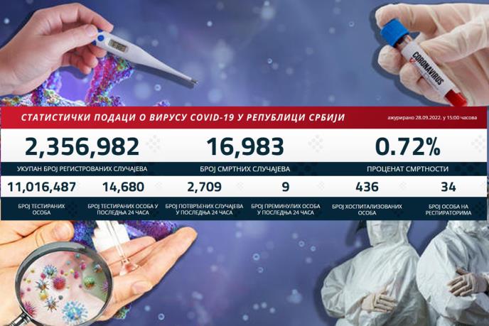 U prethodna 24 sata korona virus je potvrđen kod 2.709 osoba od 14.680 testiranih.