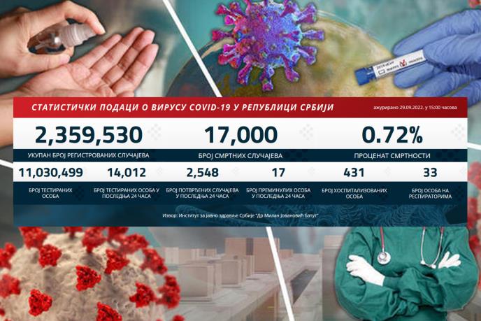 Koronavirus je u poslednja 24 sata potvrđen kod 2.548 osoba, a istovremeno je od posledica ove bolesti preminulo 17 ljudi.