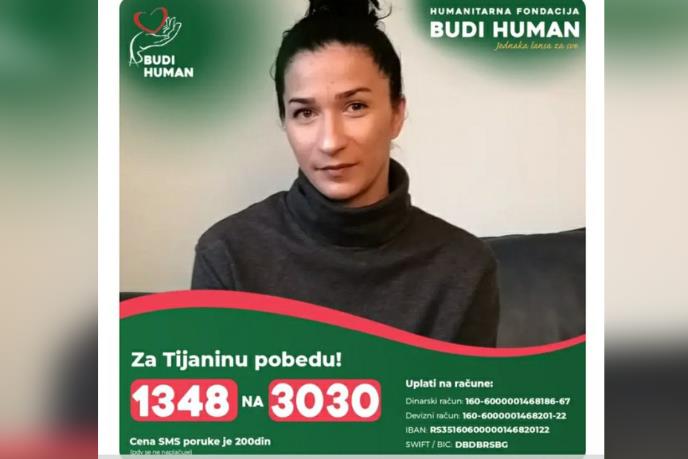 Vranjanki Tijani Stojiljković (34) potrebna je naša pomoć da sakupi novac koji je neophodan za njeno lečenje i pobedi bolest. Prikupljanje pomoći za lečenje ove mlade majke iz Vranja organizovano je preko Humanitarne fondacije Budi human- Aleksandar Šapić.