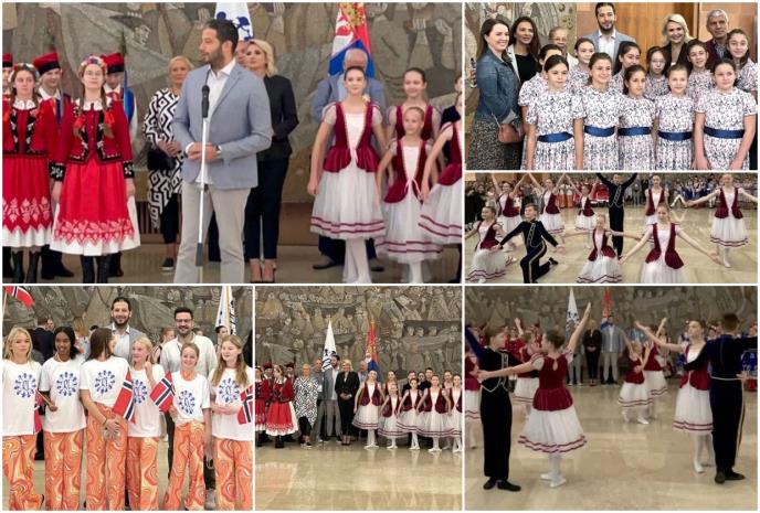 Ministar omladine i sporta Vanja Udovičić priredio je sa ministarkom za rad, zapošljavanje, boračka i socijalna pitanja Darijom Kisić prijem za decu koja su učesnici manifestacije ”Radost Evrope”.