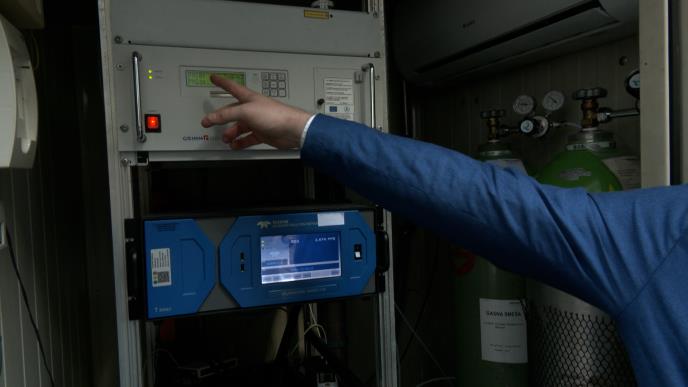 Šoštarić je potom pred kamerom pokazao kako funkcioniše uređaj za merenje zagađenosti vazduha.