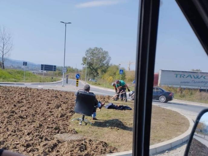 Radnici valjevskog Vidraka u toku popodneva bili su angažovani na uređenju kružnog toka na Obilaznici. Dok su oni riljali zemlju ne bi li je pripremili za sledeću sezonu sadnje, nadgledao ih je D.G . poslovođa u Vidraku. Možda bi sve bilo u redu da isti šef nije doneo fotelju sa obližnje deponije i postavio je u kružni tok. Dok sedi sa prekrštenim nogama, radnici ga moraju obilaziti dok rade. Stiče se utisak da su radnici na prinudnom radu. Ovo bi u najkraćem bio opis fotografije koju je slučajni prolaznik na kružnom toku zabeležio i potom podelio na fejsbuku.