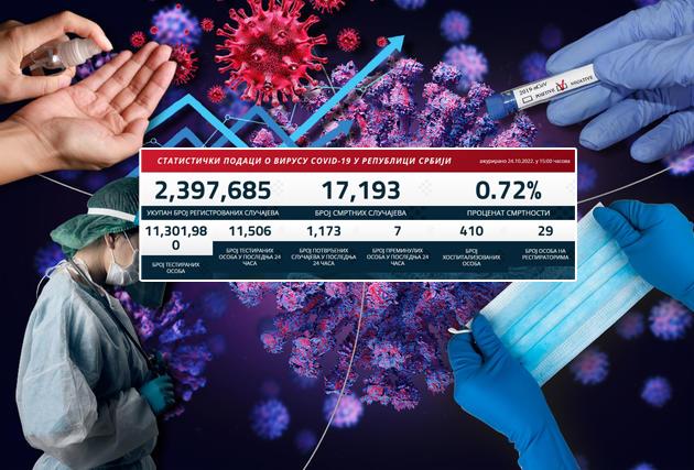 U Srbiji su u poslednja 24 sata registrovana 1.173 slučaja korona virusa, među testiranih 11.506 osoba.