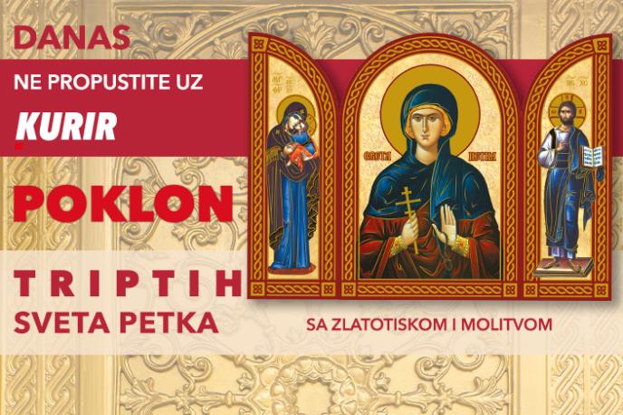 Srpska pravoslavna crkva danas obeležava dan Prepodobne mati Paraskeve - Svete Petke, zaštitnice žena, svetiteljke koja je pomagala bolesne i siromašne, i važi za jednu od najvećih srpskih slava. Tim povodom Kurir svim čitaocima poklanja ikonu sastavljenu iz tri dela - TRIPTIH s likom Svete Petke.