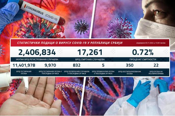 Od srede do danas, koronom je zaraženo još 832 osoba, a testirano je 9,970 uzoraka.