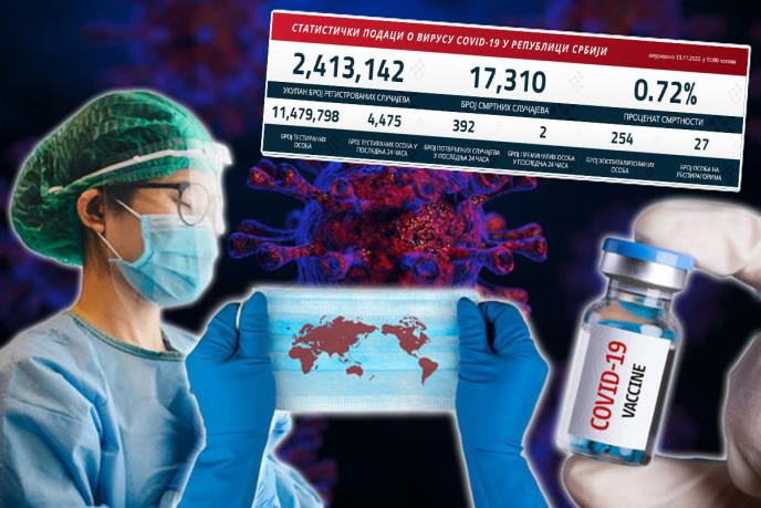 Korona virus u poslednja 24 sata potvrđen je kod 392 osoba, a istovremeno su od posledica ove bolesti preminulo dvoje pacijenata.