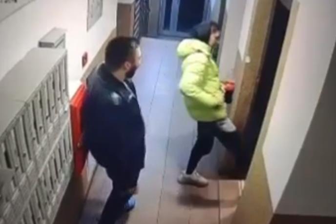 Naime, kako se vidi na prvom snimku, dvojica mladića prskaju pićem nekog nakon što im otvori ulazna vrata, a zatim flašu bezobzirno bacaju u hodnik zgrade snimajući i smejući se.