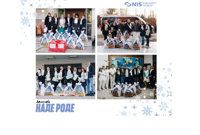 Novogodišnji praznici su pravo vreme za darivanje, te je kompanija NIS obezbedila 225 poklon paketa za bebe koje će se roditi u 15 porodilišta u Srbiji. Poklon pakete, koji sadrže artikle domaćih proizvođača, a koji su neophodni majkama i bebama po izlasku iz porodilišta, u prvim danima 2023. godine dobiće po 15 prvorođenih beba u porodilištima u Vranju, Zaječaru, Leskovcu, Kruševcu, Boru, Ćupriji, Paraćinu, Knjaževcu, Sremskoj Mitrovici, Užicu, Pirotu, Loznici, Šapcu, Vršcu i Valjevu.
