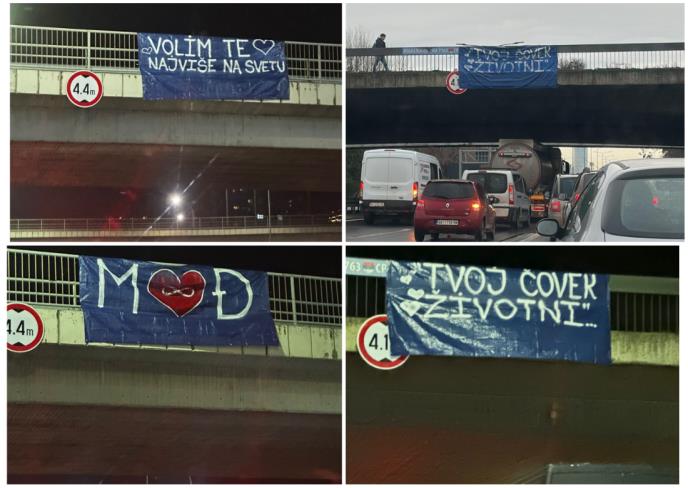 Naime, svaki nadvožnjak je na autoputu nosio poruku za jednu žensku osobu. Jedan mladić postavio je emotivne poruke koje su posvećene u koju je zaljubljen, kako bi ona to gledala jer verovatno tuda stalno prolazi, a svi su se pitali ko su oni.