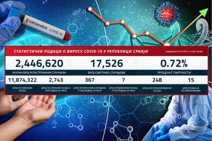 U Srbiji je u poslednja 24 sata registrovano 367 osoba zaraženih korona virusom, od ukupno 2.743 testirana uzorka.