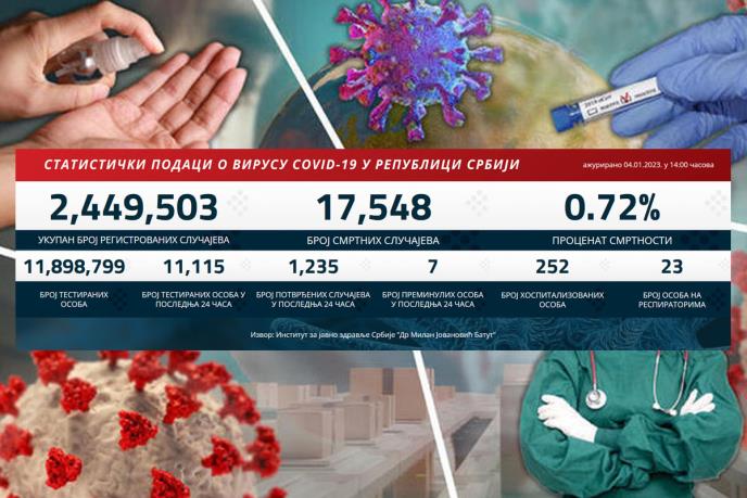 Korona virus u poslednja 24 sata potvrđen je kod osoba 1.235, a istovremeno je od posledica ove bolesti preminulo 7 pacijenata.