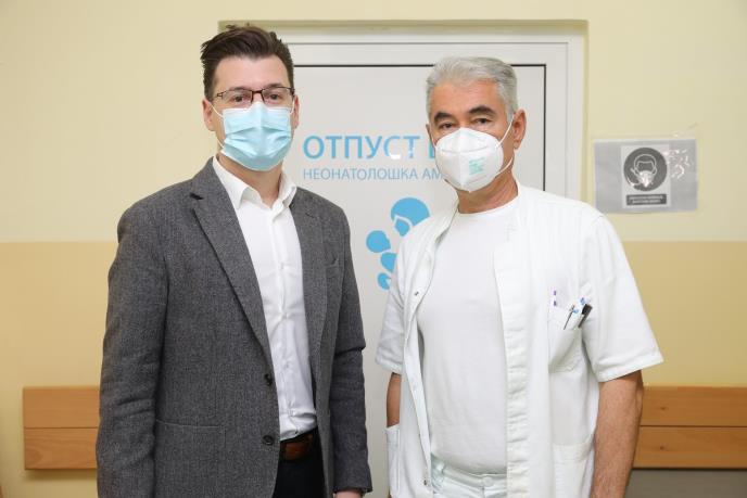 Uručenju poklona u Kruševcu prisustvovali su dr Blagoje Milovanović, načelnik Službe za ginekologiju i akušerstvo sa neonatologijom Opšte bolnice u Kruševcu i Stefan Despotović, direktor Centra za odnose sa javnošću kompanije NIS.