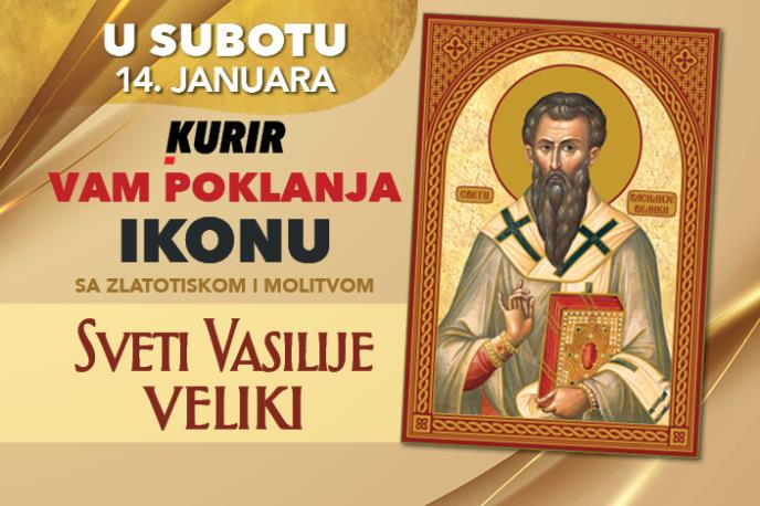 Sprska pravoslavna crkva i njeni vernici sutra obeležavaju Svetog Vasilija Velikog. Dnevne novine Kurir svim čitaocima poklanjanju ikonu sa zlatotiskom i molitvom.