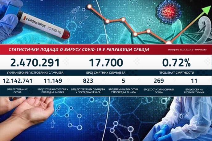 U Srbiji su u poslednja 24 sata registrovana nova 823 slučaja korona virusa, među 11.149 testiranih uzoraka.