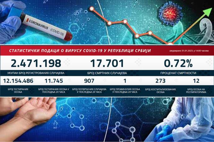 Od početka pandemije u Srbiji je urađeno 12.154.486 testova od kojih su 2.471.198 bili pozitivni.
