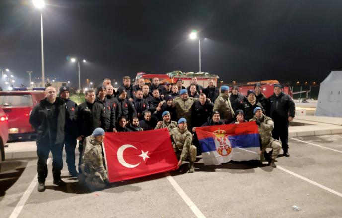 Četrdesetpet vatrogasaca-spasilaca sa spasilačkim psom Zigijem, spasilačkom opremom i 9 vatrogasnih vozila iz Beograda, Kragujevca, Bora, Novog Sada, Valjeva, Užica i Niša, upućeni su po nalogu predsednika Srbije Aleksandra Vučića i ministra unutrašnjih poslova Bratislava Gašića, odmah nakon razornog zemljotresa koji je pogodio Tursku kako bi pomogli prijateljskom narodu u Turskoj.