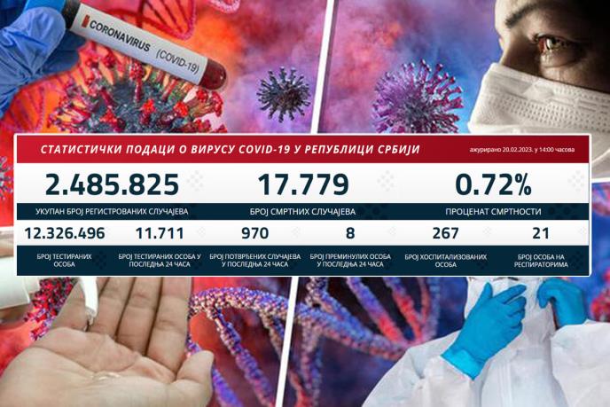 Korona virus je u poslednja 24 sata potvrđen kod 970 osoba, a istovremeno je od posledica ove bolesti preminulo 8 ljudi.