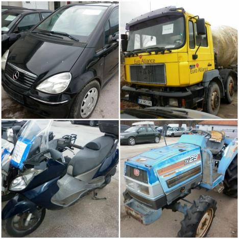 U ponudi je 33 automobila, šest motocikala, jedan četvorocikl, 12 raznih delova za motorna vozila (šasije i motori), jedan traktor sa frezom i dva kamiona (mikser i tegljač), koje možete pogledati na stranici https://licitacije.carina.rs/#/