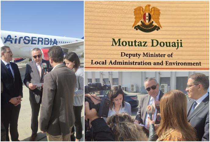 Na aerodromu u Damasku, avion sa humanitarnom pomoći iz Srbije dočekao je Mutaz Duaji, zamenik ministra za lokalnu upravu i životnu sredinu.
