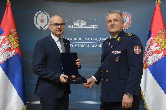 U znak zahvalnosti za pomoć u unapređenju ustanove, načelnik VMA pukovnik prof. dr Miroslav Vukosavljević uručio je Plaketu VMA ministru Vučeviću.