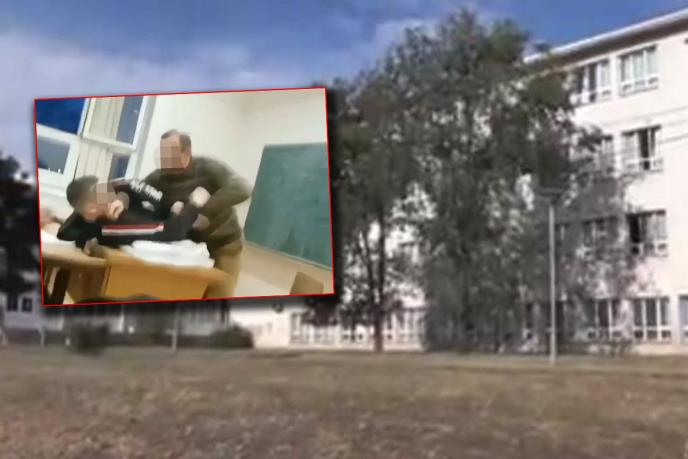 U celom tom okrašaju, u jednom momentu profesor obara učenika na katedru, on kreće da pada, ali uspeva da ostane na nogama, nakon čega on kreće da gura profesora. Incident se zavšrava tako što nastavnik napušta učionicu. Na snimku se vidi i da se grupa drugih učenika smeje na ceo događaj. Sve ovo iz klupe snima neko od učenika.