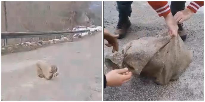 MUŽ JOJ JE NAIŠAO NA VEZANU VREĆU NASRED PUTA KA TARI: Slomiće vam srce ali i razbesneti kad vidite šta se krilo u njoj! (VIDEO)