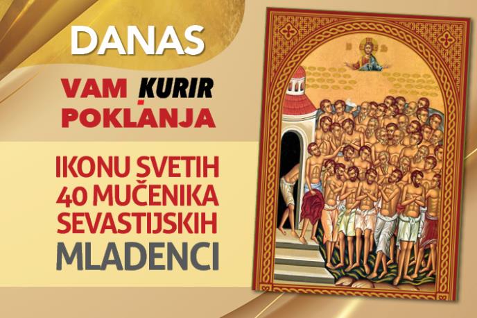 Srpska pravoslavna crkva i njeni vernici danas obeležavaju praznik Svetih 40 mučenika sevastijskih - u narodu poznat kao Mladenci. Tim povodom u Kuriru vas čeka POKLON: ikona SVETIH 40 MUČENIKA SEVASTIJSKIH sa zlatotiskom i molitvom.