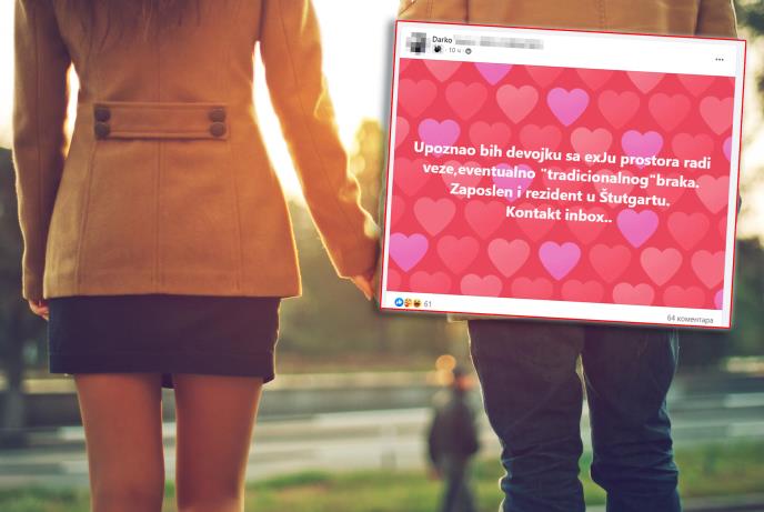 - Upoznao bih devojku sa ex Yu prostora radi veze, a eventualno i radi "tradicionalnog" braka. Zaposlen i rezident u Štutgartu - napisao je Darko u jednoj grupi koja okuplja naše građane u Nemačkoj.