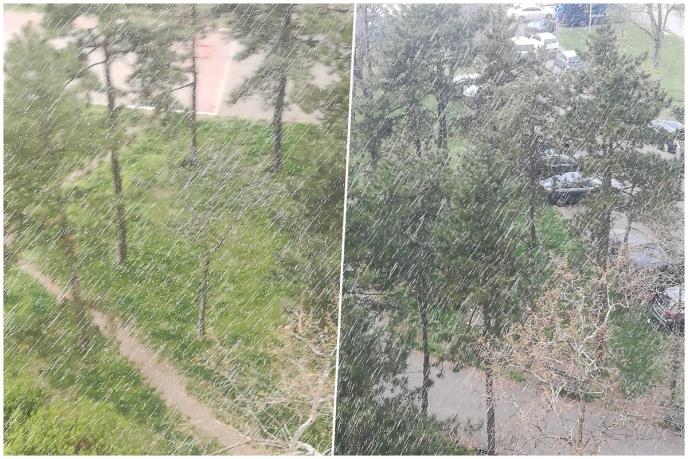 Nešto pre 17 sati na području zapadnog Srema i na jugu Banata zabeležen je pljusak kiše, snega i krupe, praćen grmljavinom, a ovaj grmljavinski sistem kreće se ka jugoistoku. Atmsfera je danas veoma nestabilna, pa se dešavaju burniji atmosferski procesi, uobičajeni za letnji deo godine. Temperatura u višim slojevima atmosfera je veoma niska.
