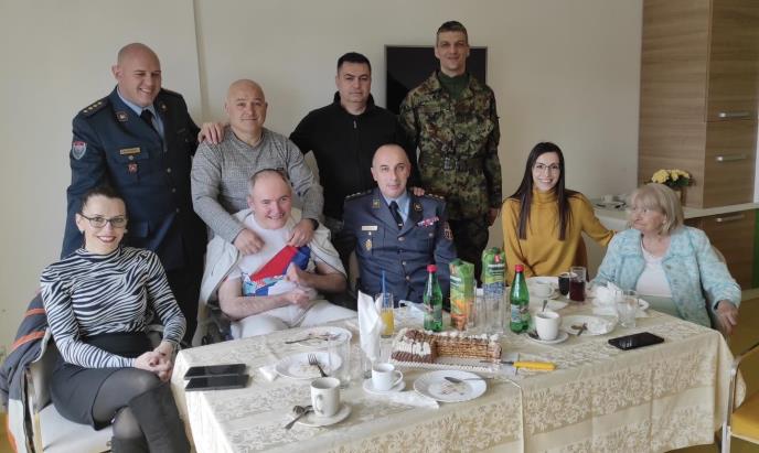 Na godišnjicu ranjavanja Željka Mićića, poručnika koji je ranjen tokom NATO bombardovanja, posetile su kolege iz Beograda u domu za strare, čiji je Mićić korisnik.