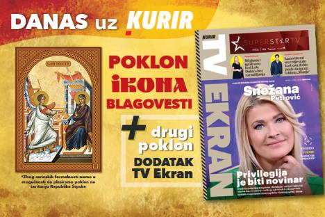 U dnevnim novinama Kurir danas vas čeka poklon - ikona Blagovesti sa zlatotiskom i molitvom na poleđini plus dodatak TV Ekran.