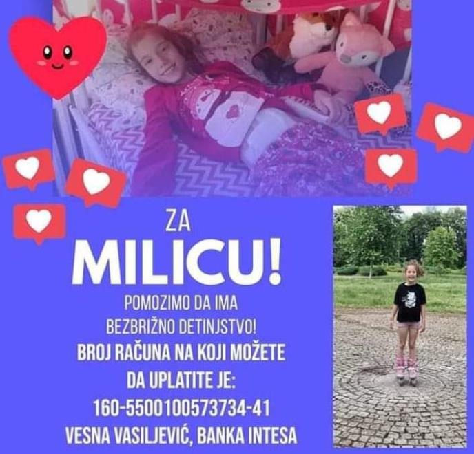 Milica Vasiljević je osmogodišnja devojčica iz Sremske Mitrovice. Kada joj je u novembru prošle godine otkriven redak oblik sarkoma, DSRCT, počela je njena borba za život.