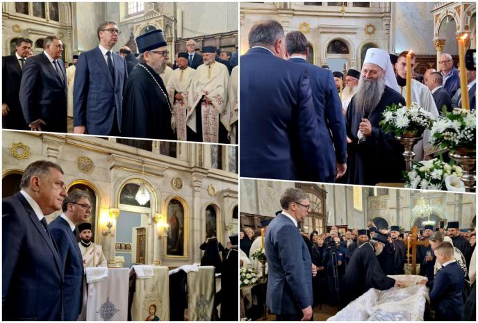Liturgiji pisustvuju predsednik Srbije Aleksandar Vučić i predsednik Srpske Milorad Dodik.