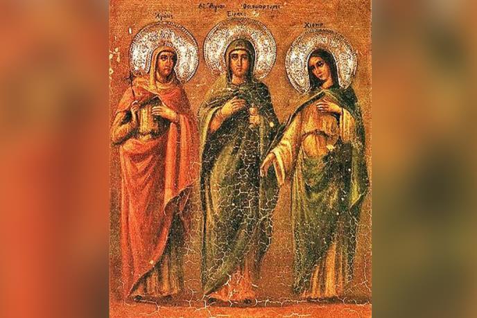 Srpska pravoslavna crkva slavi svete mučenice Agapiju, Hioniju i Irinu. One su bile sestre rođene, iz okoline Akvileje (ili Soluna). Kada je car Dioklecijan bio u Akvileji naredio je da se pogubi znameniti duhovnik Hrisogon. U to vreme neki stari prezviter Zoil je, kako hrišćani veruju, imao viđenje kojim mu se otkrilo, gde se nalazi telo Hrisogonovo nesahranjeno.