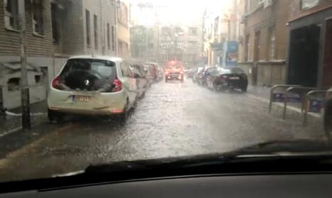 BEOGRAD -U ranim popodnevnim satima Beograd je zahvatlo jako nevreme sa pljuskovima i grmljavinom, prava provala oblaka u kojoj se ogromna količina kiše sručila na grad posle sunčanog prepodneva.