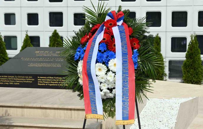 Dopisnicima agencije Sinhua i lista "Guangming žibao" Šao Junhuan, Su Sinhgu i Džuu Jingu, koji su ubijeni u NATO bombardovanju zgrade kineske ambasade u Beogradu na današnji dan 1999. godine, odata je danas počast polaganjem venaca na mestu stradanja.