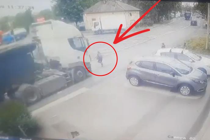 Naime, kako se vidi na fotografijama, dečak je istrčao na put direktno ispred kamiona, a pravo je čudo kako je vozač kamiona uspeo u sekundi da odreaguje, te da zakoči i izbegne tragediju, s obzirom na to koliko je malo vremena imao za to.