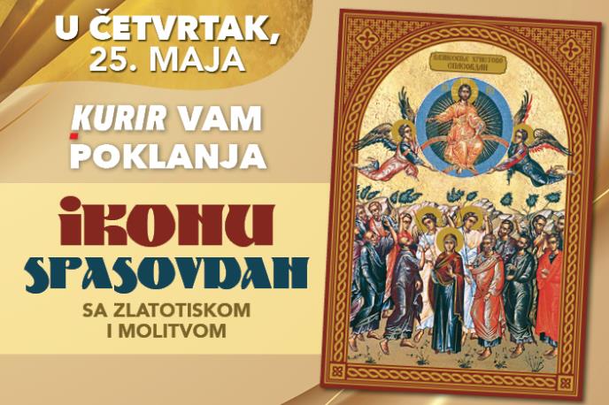 Srpska pravoslavna crkva i njeni vernici u četvrtak, 25. maja, obeležavaju Vaznesenje Gospodnje, praznik koji je u narodu poznat kao Spasovdan. Tada vas u Kuriru čeka poklon ikona VAZNESENJE GOSPODNJE sa zlatotiskom i molitvom.