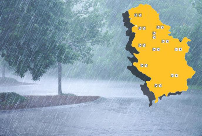 U celoj Srbiji danas je na snazi narandžasti meteo alarm zbog kiše i grmljavine, što znači da je vreme opasno.